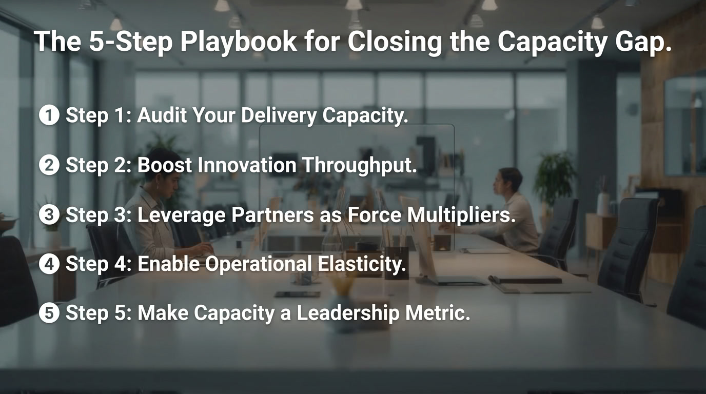 Unlock a 5-step playbook to close your own Capacity Gap. Move from perpetual pilot projects to a powerful engine of execution, leveraging AI, strategic partnerships, and a new operating model for the digital age.